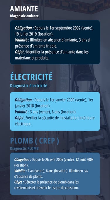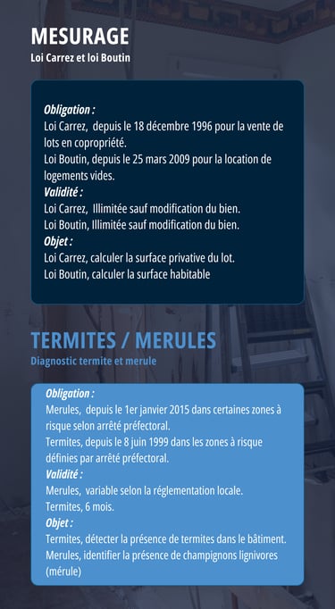 ✔ Vente et location : DPE, amiante, plomb, électricité, gaz, Loi Carrez, Loi Boutin